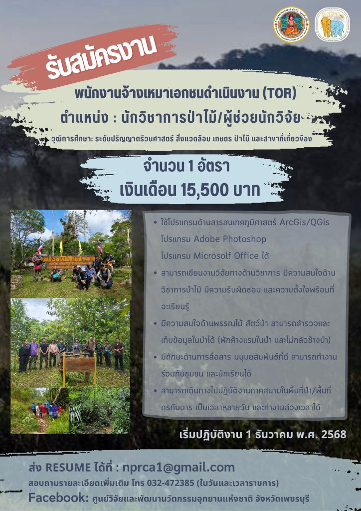 พนักงานจ้างเหมาฯ ตำแหน่ง นักวิชาการป่าไม้/ผู้ช่วยนักวิจัย