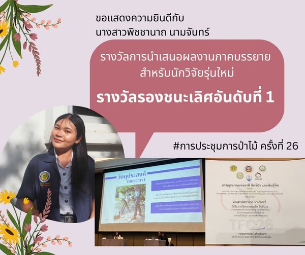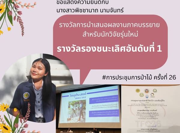 นิสิตสาขาวิศวกรรมป่าไม้ได้รับรางวัลการนำเสนอผลงานภาคบรรยาย สำหรับนักวิจัยรุ่นใหม่