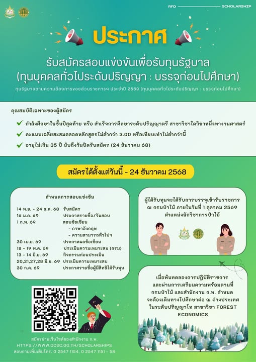 ทุนการศึกษาต่างประเทศ จบแล้วทำงานกรมป่าไม้